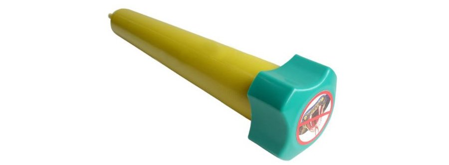Вибрации и звуки от прибора пугают змей на участке до 1 000 м2. Для больших территорий достаточно применять несколько экземпляров отпугивателя. Модель устанавливается в почву и работает от сменных батарей.
